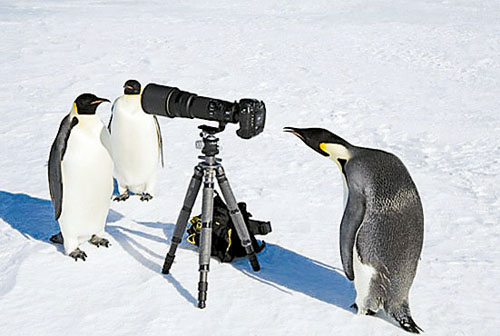 近日,美国摄影师戴维·舒尔茨在南极有幸拍到了几只帝企鹅用他的相机拍照留念的画面。这几只可爱的帝企鹅,到底是出于对相机的好奇还是真想拍照留念,我们人类不得而知。但这个世界上,还真有动物拍照的。美国西雅图一对夫妇,就把相机绑到自家宠物猫的背上,每隔2分钟,自动拍一张照片。后来主人还专门为小家伙举办了个猫影展,并把最棒的作品挂到网上出售。看来,换个视角,会有不错的效果和收获。