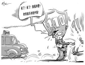 安徽一110警车出警后,向报警者收租车费,负有责任的指导员被停职。漫画:徐简