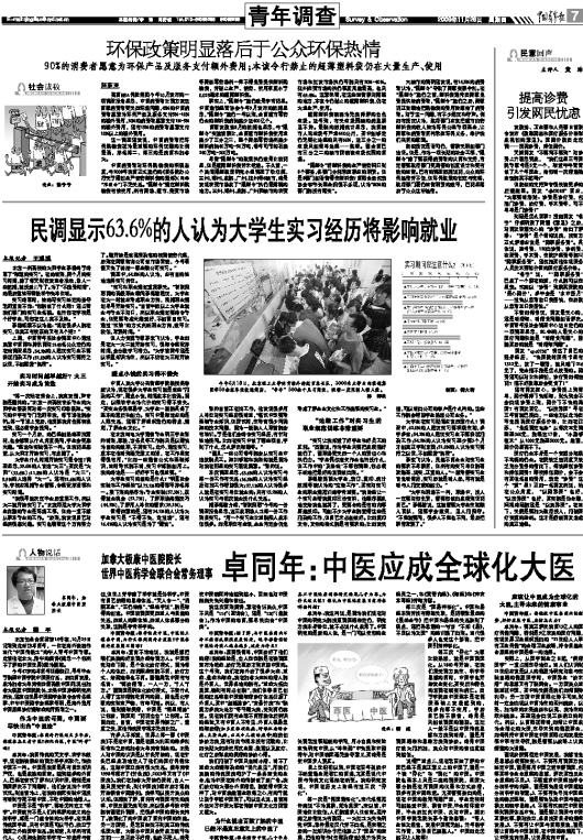 民调显示63.6%的人认为大学生实习经历将影响就业