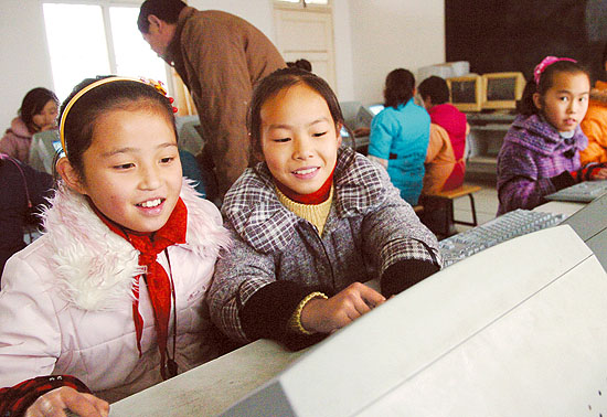 12月2日,大杨镇五里拐小学的学生在上计算机课。安徽省合肥市庐阳区为打破城乡教育发展的不均衡,缩小城乡学校之间的差距,把城区学校与乡镇学校进行“捆绑”,实现城乡共享优质教育资源。“捆绑”后,城乡学校间开展一对一的帮扶,并通过教师调剂、相互交流,提升农村学校的教学水平,缩小城乡学校的师资差距,推进乡镇学校快速发展。 新华社记者 刘军喜摄