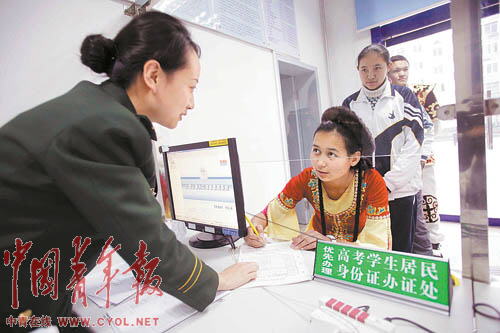 申领高考准考证需要二代身份证,但由于二代身份证申领期限较长,辖区部分高考考生急需办理临时身份证。青岛边防支队中韩边防派出所民警本着特事特办的原则,主动放弃休息时间,延长工作时限,合理安排办证进度,保证考生能随到随办,最大限度为学生提供办证方便。