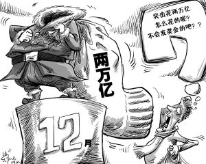 两万亿元——这是2009年最后一个月,全国财政部门根据预算将花掉的钱。有人认为,政府机关公务人员每到年底都有一大笔可观的奖金要发,是一项不小的财政支出。(人民网12月16日)漫画:徐简