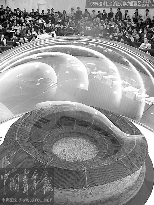 日前,中央戏剧学院、清华大学学生创业项目“故园之恋”用绘画、建筑、雕塑、戏剧等多种艺术语言,把中华五千年优秀的传统建筑,制作成标本记录与保存下来。其中的福建土楼建筑标本成为2009全球社会创业大赛中国区总决赛中最闪光的项目。