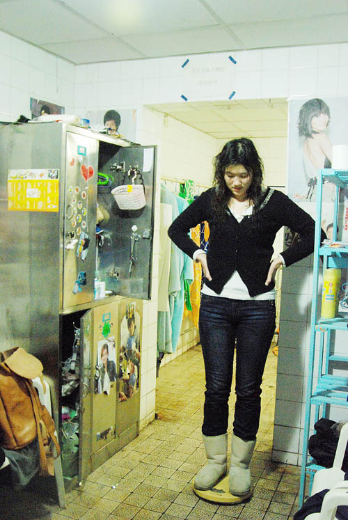 下班前称称体重。保持身材,对于“美人鱼至关重要”。