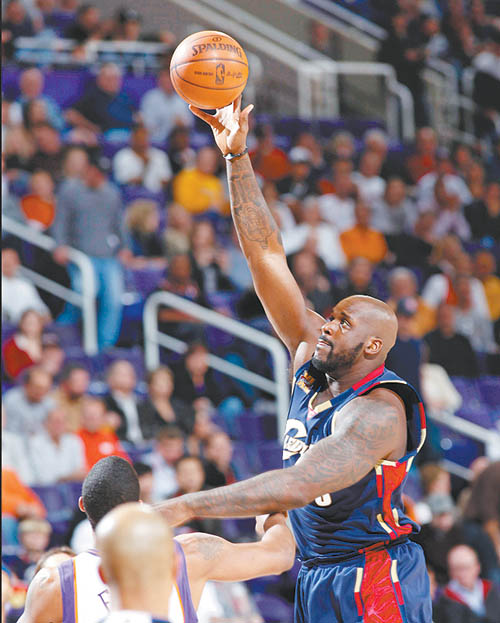 12月22日,美国凤凰城,NBA常规赛,奥尼尔在上篮。
