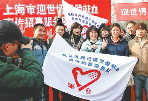 当日,上海首支迎世博无偿献血宣传招募服务队举行成立仪式。这支服务队下设11个分队,覆盖上海市区的各大爱心献血点。成立这支队伍旨在增强2010年上海世博会期间无偿献血招募服务的能力。