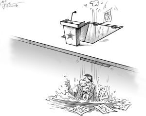 许昌市魏都区委一副书记作检讨时空话连篇,被市委书记轰下台:你的发言都是空话,我看过了,你不要再念了,你下去吧。(《河南日报》12月28日)漫画:徐简