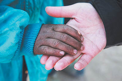1月2日,“温暖孩子”——赴青海送温暖行动的志愿者团队来到青海民和县韩家岭小学,一位来自北京的志愿者拉起了一位当地小学生的手。民和县是青海省最为贫困的地区之一,人均年收入约为2000元,韩家岭村又是民和最贫困和偏僻的地方,100多户村民分散居住在海拔约2500米的山腰上。这里地处山区,冬季寒冷,孩子们的手多数黑且粗糙。