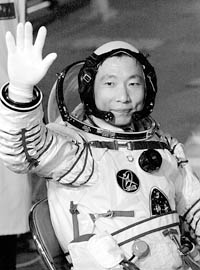 2003年10月15日9时整,随着零号指挥员“点火!起飞!”口令的下达,火箭托举着飞船和飞船里的杨利伟徐徐升空。次日清晨,“神舟”五号飞船返回舱在预定地点准确着陆。杨利伟迈出舱门时说的第一句话是,“这是祖国历史上辉煌的一页,也是我生命中最伟大的一天”。