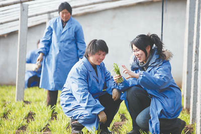1月14日,山东沂源,毕业于青岛农业大学的大学生村官正在田间地头与村民交流。