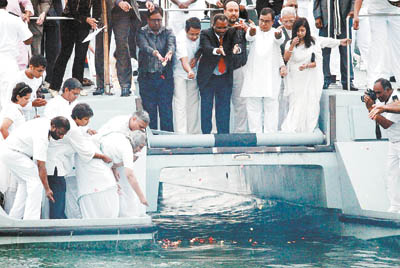 圣雄甘地骨灰入海