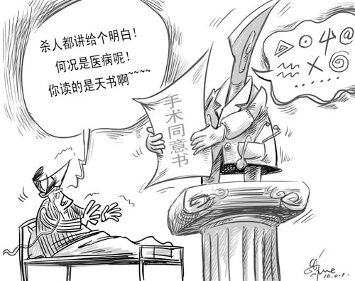 卫生部1月29日启动“预防和有效处理医患纠纷的机制研究”项目,手术等有创性治疗前的患者知情、同意,将通过风险告知的多渠道、统一范本和“口语化”,让患者知情、理解后再选择是否同意,希望借此减少医患纠纷。(《新京报》2月1日)