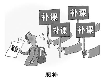 据《潇湘晨报》1月20日报道,一名学生在网上发出“反补课倡议书”,号召全国学校成立“中国反补课学生联盟”。网帖中,这名学生讲述了自己在寒假补课时的心情:“补课的重压下,神经摇摇欲坠,做梦都梦到ABCD。”