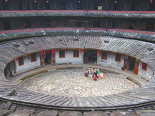 提到福建土楼,人们最先想到的往往是南靖土楼和永定土楼,相较之下,华安土楼就显得陌生很多。华安的二宜楼是国家级土楼重点文物保护单位,被称为“圆楼之王”、“民居瑰宝”、“神州第一楼”。土楼并不仅仅是具观赏性的建筑,它首先是客家人聚居的住所,有着御外凝内的独特作用。家是最坚实的港湾,这点在二宜楼的外观上得以体现。作为一座集体性的建筑,其最大的特点在于造型宏大,无论远观还是走到跟前,二宜楼都以其庞大的单体式结构令人震撼。在青山绿水之间,一座庞大的土楼显得坚实而雄伟,给归来的游子最大的安全感,给居住其中的人们最强大的保护。