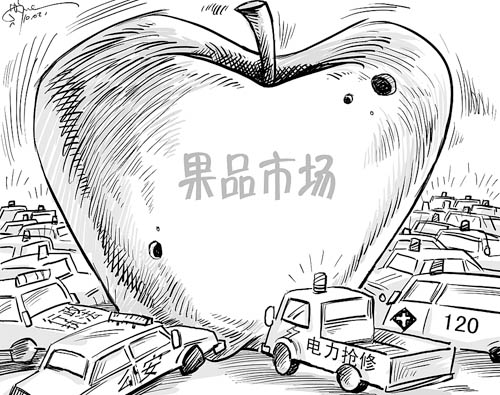 近日,郑州某果品市场内热闹异常,很多市民赶来采购果品,连各种公车也赶来凑热闹,从警车、救护车、行政执法车到热力抢修车应有尽有,被果商戏称为“公车开会”。