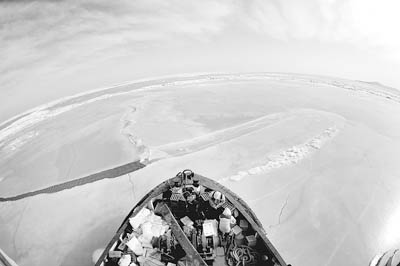 2月10日,“渤拖3”号破冰船在前往菊花岛时被海冰卡住,破冰船被迫返航。