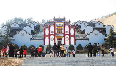 2月19日,游客在湖北省秭归县凤凰山文物复建景区参观迁建完成的屈原祠。三峡工程蓄水前,国家有关部门将湖北省秭归县境内的24处古民居、古祠庙、古城门等将被淹没的地面文物古迹整体迁建至三峡大坝对面的凤凰山上。目前,屈原祠等24处古文物已全部复建完成,预计今年端午节前正式对外开放。