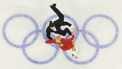 当地时间2月19日,俄罗斯一对选手在冰舞比赛中。