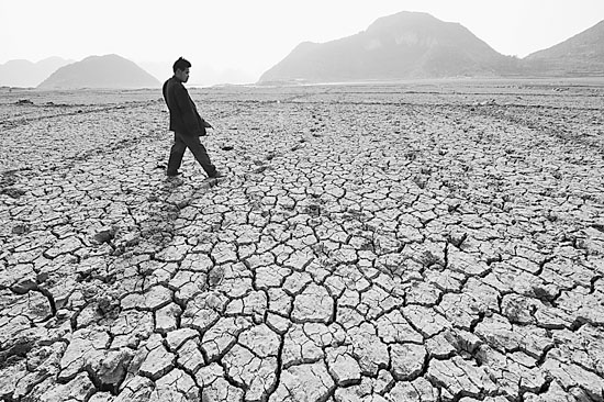2月26日,笔者看到,贵阳市红枫湖水库上游大面积蓄水区干旱现底。据居住在红枫湖畔的安顺市平坝县马场镇马鞍村龙光发等村民介绍,自去年农历六月二十九以来,该地区没有下过一场中到大雨,水库里的水因供城乡饮用,水位一天天下降,现在很大面积蓄水区已干涸成了放牧场。据介绍,像这样的旱情是当地多年来少见的。吴东俊摄