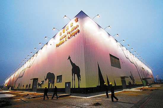 3月1日,上海世博会非洲联合馆调试夜景灯光。上海世博会开幕倒计时60天之际,世博会外国国家馆已开始陆续进行夜景灯光调试,为4月中旬进行的世博园区试运营做准备。新华社发