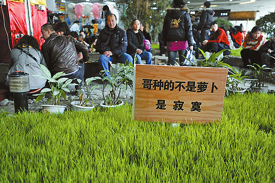 2月28日,沈阳某商场的室内现实版“开心农场”绿意浓浓。20多块正方形小菜园里插着红色的小标签,上面写着植物的名字和一些祝福的话语和联系方式等。IC供图