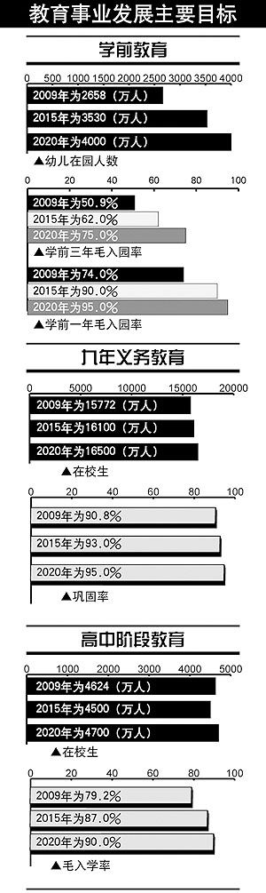 “这些相差十几倍的数字说明什么呢?”董奇说:“在我国,地区之间、区域之间社会经济发展水平差距非常大,这是我国的一个基本国情。所以在‘规划纲要’中明确提出到2020年全面提高普及水平、全面提高教学质量,基本实现区域内均衡发展。”