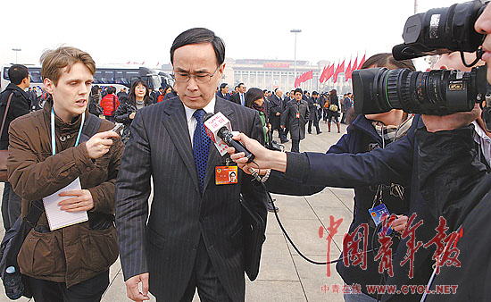 3月3日,记者们把全国政协委员、卫生部部长陈竺团团包围。新华社记者 费茂华摄