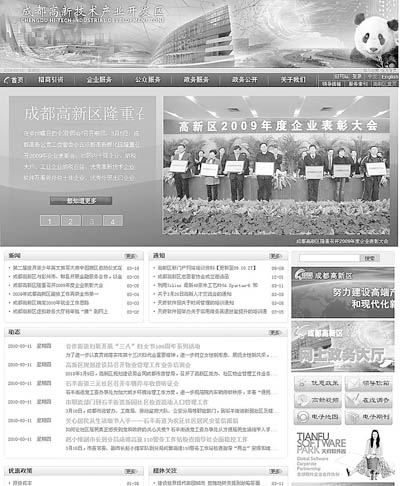 成都高新区还按照西方人习惯的视觉效果和表达方式,设计出了英文网站,现在英文网站已经正式上线,服务器设在英国。