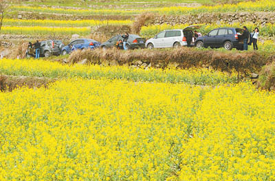 大批自驾车游客来到乾潭镇胥岭村观赏春日美景