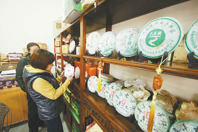3月22日,郑州茶叶市场内,一位女士准备多买些普洱茶存起来,云南大旱,部分市场普洱茶价格已经开始上涨。