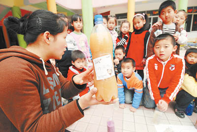 3月22日,上虞市鹤琴幼儿园的老师向小朋友讲解水资源保护知识。当日是第18个“世界水日”,浙江省上虞市鹤琴幼儿园的老师让小朋友采集各种水样,为他们讲解水资源的污染和保护,从小培养孩子们保护水资源的意识。