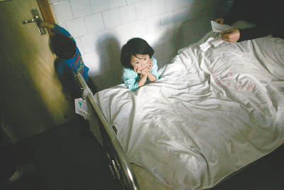 3月20日,湖南郴州一所医院的病房内,孩子趴在病床边,长久地注视着对面一位老年患者。郴州市桂阳县日前发生血铅中毒事件,住院治疗者已达19人,其中18人为14岁以下的儿童。由于医院床位有限,部分被查出铅毒的孩子与其他成人患者同住一个病房。