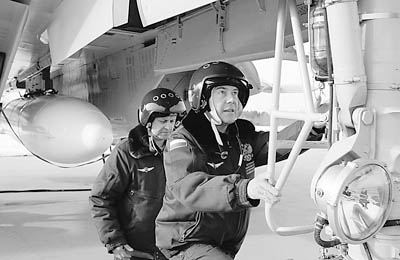 2009年3月29日,俄罗斯首都莫斯科,俄罗斯总统梅德韦杰夫在视察俄空军基地时,亲自驾驶最新式战斗轰炸机飞行半小时。