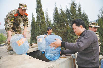 这几天,兴仁、安龙和兴义周边地区不时传来人畜饮水困难的信号,州委、州政府要求我们为这些困难群众送水。我们的任务是用密封的塑料桶将水装好,再用车拉到需要帮助的村寨把水分给群众,有时还要把水送到家里去。