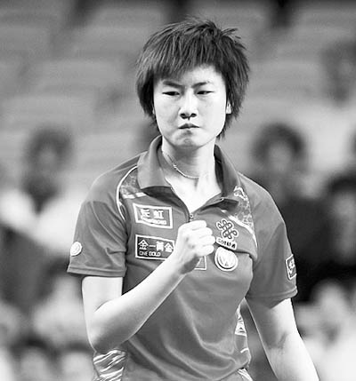 3月26日,中国选手丁宁在广州举行的第23届亚洲杯乒乓球赛女子单打四分之一决赛中,以4∶0战胜新加坡选手王越古。