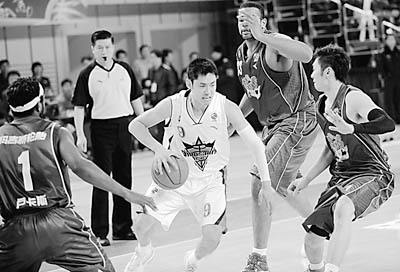 上海队和辽宁队的比赛无疑是季后赛中实力最为接近的较量。在周三进行的首回合较量中,刚刚荣膺全明星赛“3分王”的辽宁队球员张庆鹏手感极佳,在季后赛3分线外扩50厘米的情况下,他的3分球10投7中。虽然辽宁队的得分王仍是外援,但张庆鹏几次凭借精准的3分球,压制了上海队的进攻高潮,其作用丝毫不逊于外援。
