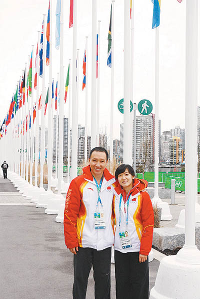 刘秋宏(右)与康复医师在温哥华冬奥村合影。