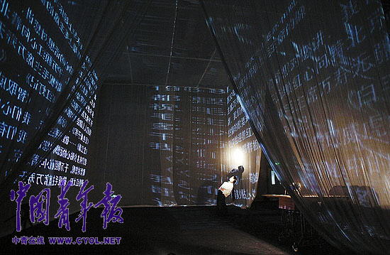图为:吴文光与文慧行为艺术《回忆》表演现场。 本报记者 李建泉摄
