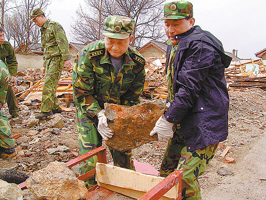 龚曲此里(右)在抢险救灾现场。(资料图片)