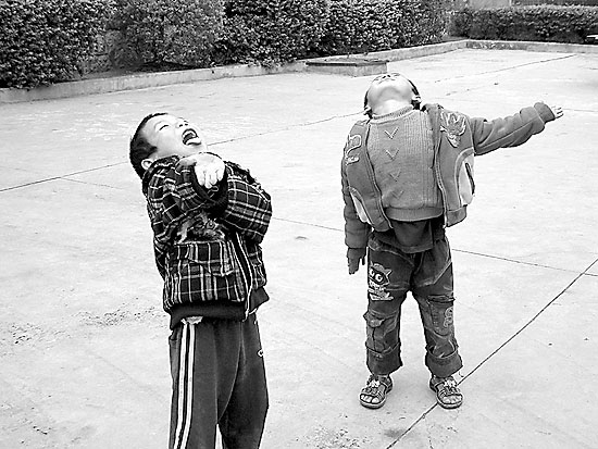 3月30日上午11点,天空飘下一阵小雨,欢喜得开远市阿德邑村小学的学生跑到操场上伸开手掌、张开嘴接雨。董晓东摄