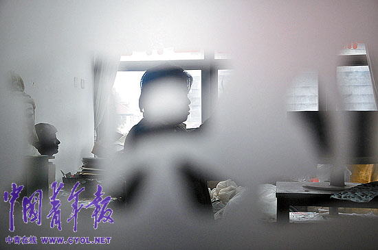 曹瑞强在自己的雕塑工作室里工作,这个工作室是在长宁区残联的帮助下建立起来的。
