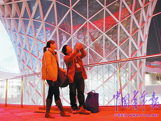 完成雕塑的安装和修整后,曹瑞强带着谢璐逛了一圈世博园,他们在阳光谷下“谈论”着阳光谷的灯光。