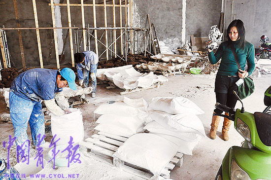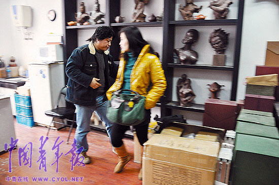 曹瑞强每次制作大型雕塑作品,谢璐都会用照相机和摄像机记录下雕塑的全过程。