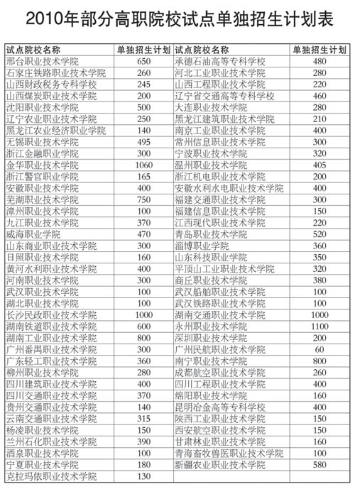 当前位置:首页-->> 2010全国高职院校单独招生特刊