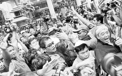 4月10日,支持泰国前总理他信的“红衫军”示威者在泰国首都曼谷参加集会。泰国总理阿披实9日晚说,“红衫军”的行为不可能给国家和人民带来幸福,政府将维护法律秩序,尽快使局势恢复正常。