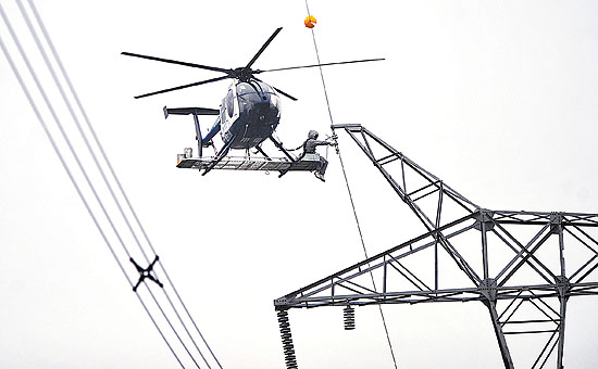 业内专家表示,这一瞬间标志着湖北省超高压输变电公司成功实施“超高压输电线路直升机带电作业”,并且填补了我国在这一技术领域的空白。直升机带电作业目前只有美国、加拿大、澳大利亚等少数国家具备操作能力,是对电力线路进行检修和处理缺陷时使用的一种技术手段。新华社记者 郝同前摄
