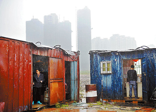 4月11日,福州通江路,居住在集装箱屋的民工及家属。这种住人集装箱被称作“箱式活动板房”,在房价高涨的大城市里已屡见不鲜。柳涛摄