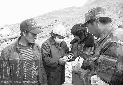 4月22日,青海玉树结古镇布西格村,来自第三军医大学西南医院医疗队的专家为灾区牧民送药。