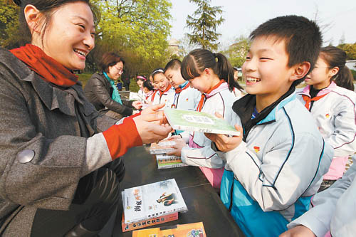 4月23日,南通市新华书店在虹桥社区流动儿童读书站成立仪式上向孩子们赠送新书。当日是“世界读书日”,江苏省南通市虹桥街道虹桥社区与南通市新华书店联合成立该市首个社区流动儿童读书站——万花筒流动儿童读书站。该读书站存有各类儿童书籍万余册,供社区的外来和本地儿童免费借阅图书。