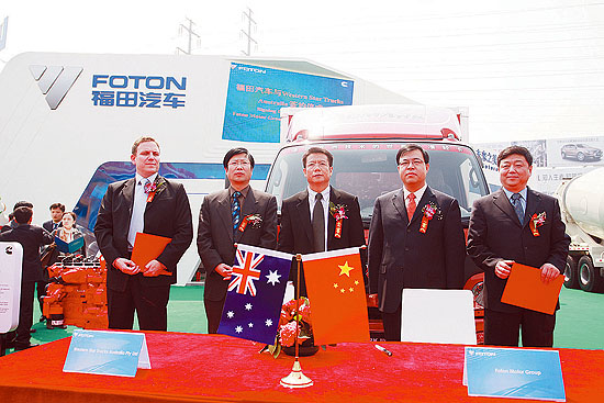 欧马可C280产品全球上市发布会上福田汽车领导与澳大利亚经销商合影